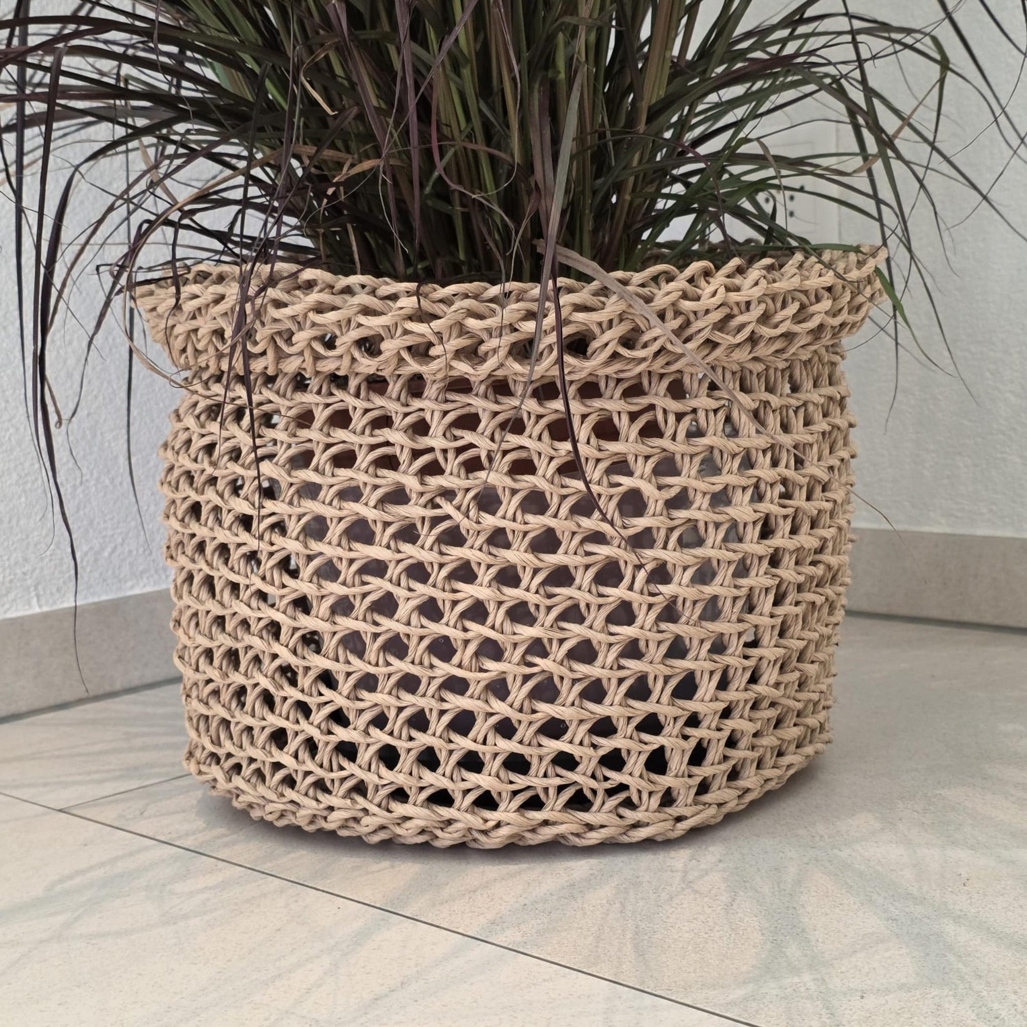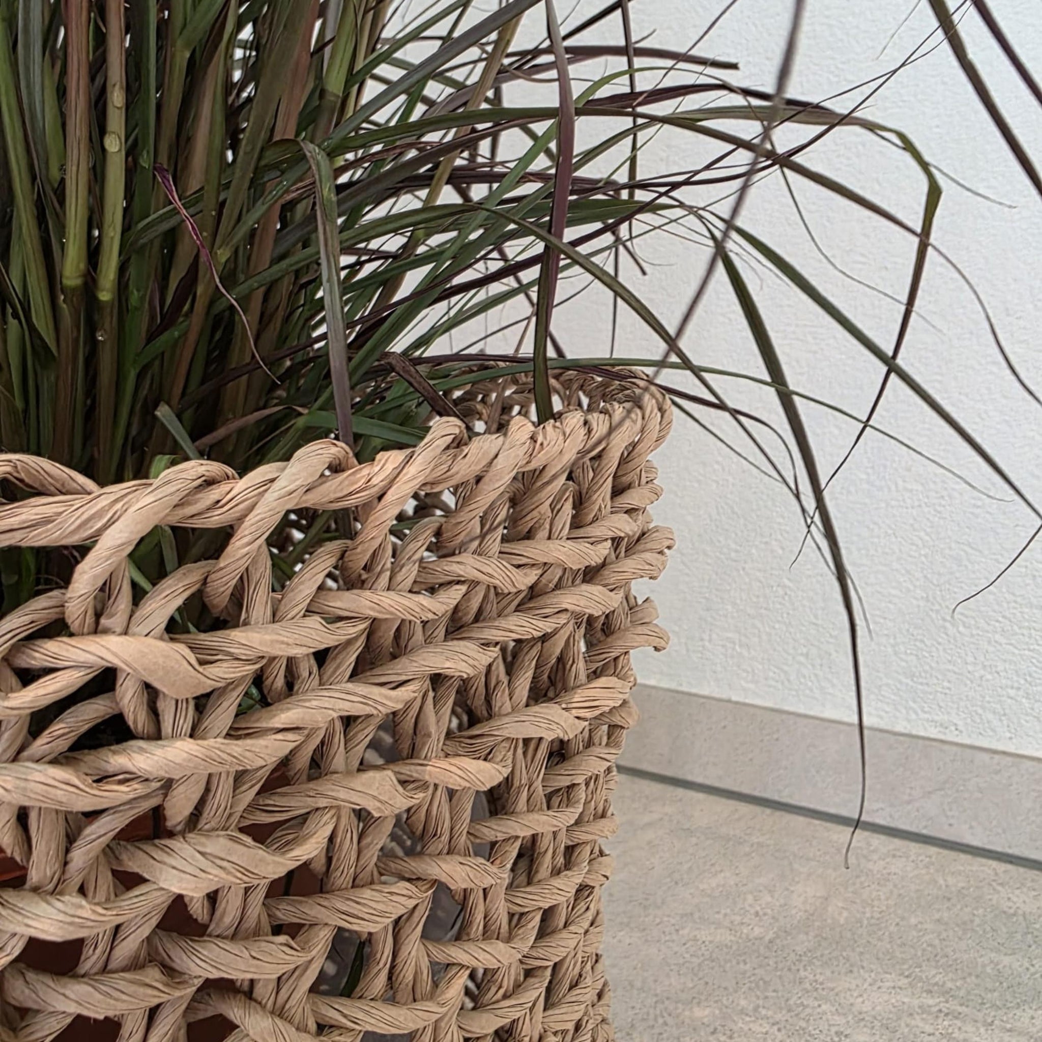 Jeder Korb ist vielseitig einsetzbar: Ob als dekorativer Übertopf für Pflanzen, zur Aufbewahrung von Spielzeug, Garn, Kissen oder Decken – er bringt natürliche Wärme in dein Zuhause. Die hochwertige, handgewebte Verarbeitung sorgt für besondere Robustheit und