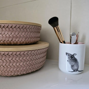 Der Wonder M von Handed By ist ein trendiger Aufbewahrungskorb mit praktischem Bambusdeckel. Ideal für den Flur – perfekt zur Aufbewahrung von Schlüsseln, Zugangskarten oder anderen Kleinigkeiten. Auch im Badezimmer macht er eine gute Figur, beispielsweise für Schmuck, Wattepads oder Make-up.