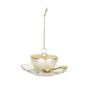 Diese außergewöhnliche Weihnachtskugel in Form einer Kaffeetasse verzaubert mit detailreicher Verarbeitung und einem edlen Farbspiel aus Weiss und Gold.